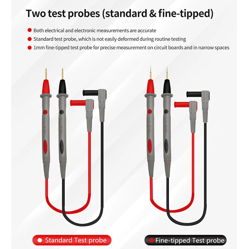 ● Zwei Prüfspitzen (Standard und mit feiner Spitze)