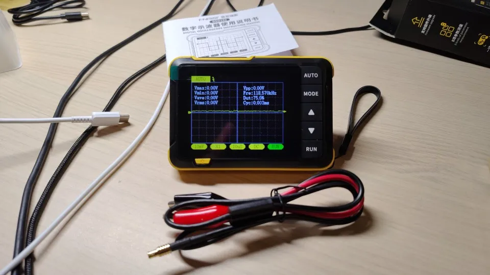 Cet oscilloscope numérique compact est doté d'un écran couleur de 2,8 pouces, d'une fréquence d'échantillonnage en temps réel de 2,5 Méch./s, d'une bande passante de 200 kHz et de fonctions de déclenchement complètes (simple, normal, automatique). Il peut être utilisé librement pour les signaux analogiques périodiques et numériques non périodiques. Il prend en charge le basculement entre les modes de déclenchement sur front montant et sur front descendant, et prend en charge la mesure de signaux de tension jusqu'à ±400 V. Son affichage de la forme d'onde permet une variété de mesures pour répondre à vos besoins quotidiens. Doté d'un signal carré d'étalonnage de 1 kHz, d'un réglage automatique par simple pression sur un bouton et d'un port Type-C prenant en charge la mise à jour et la charge du micrologiciel, il est idéal pour les mesures de réseaux électriques, l'apprentissage du bricolage, la réparation automobile, la réparation d'appareils électroménagers, la recherche et l'enseignement, l'entretien extérieur, etc.