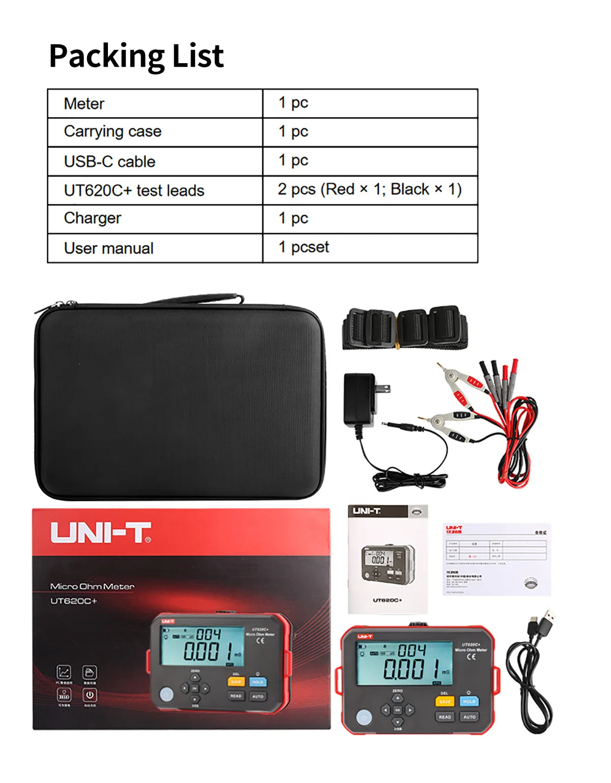 Micro-ohmmètre UNI-T UT620C+ 0,001 mΩ ~ 300 kΩ, testeur numérique de faible résistance CC, test d'isolation, écran LCD, IP54
