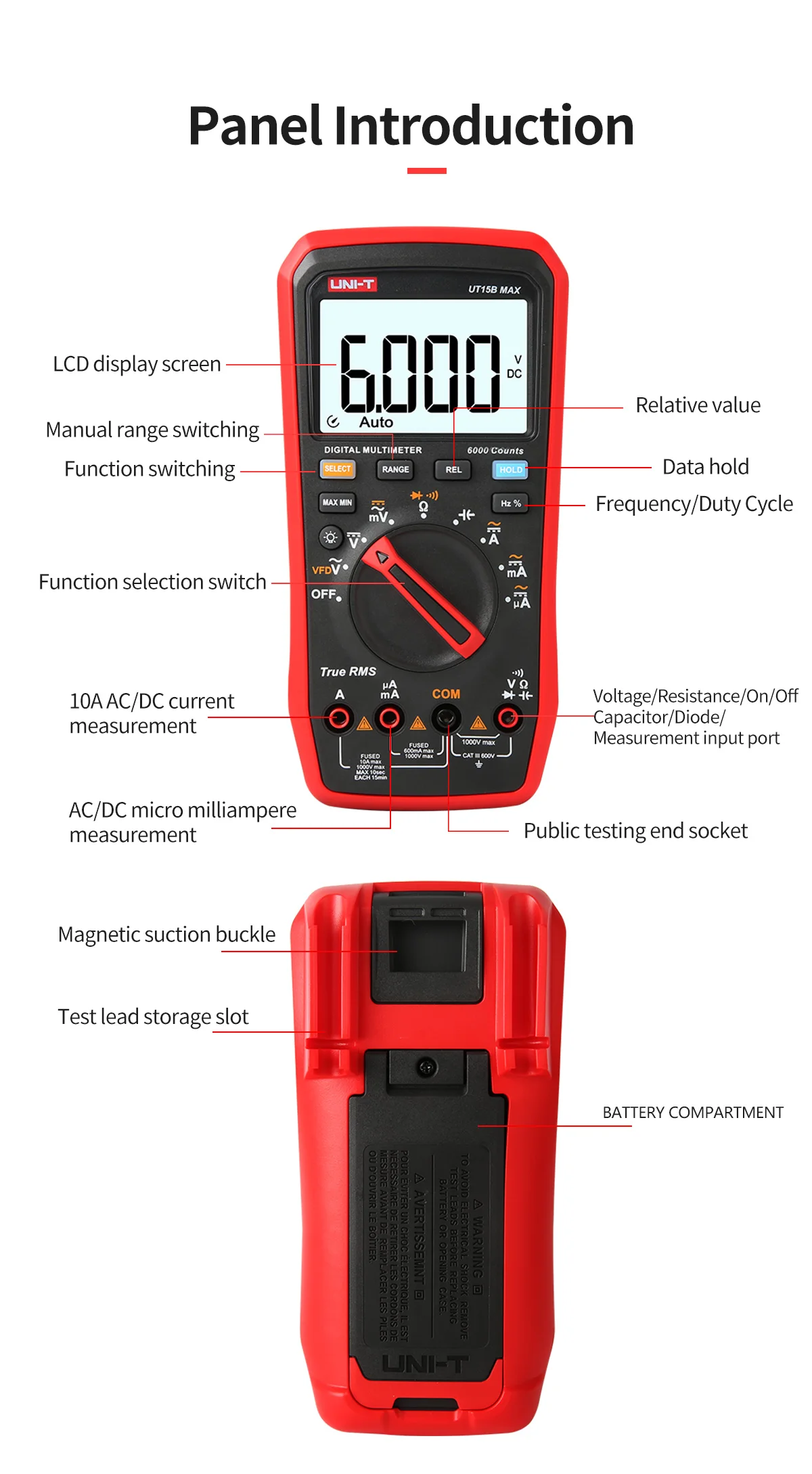 UNI T Professzionális digitális multiméter teszter UT15B MAX 1000V AC DC feszültségmérő kondenzátor teszter True RMS elektromos multiméter