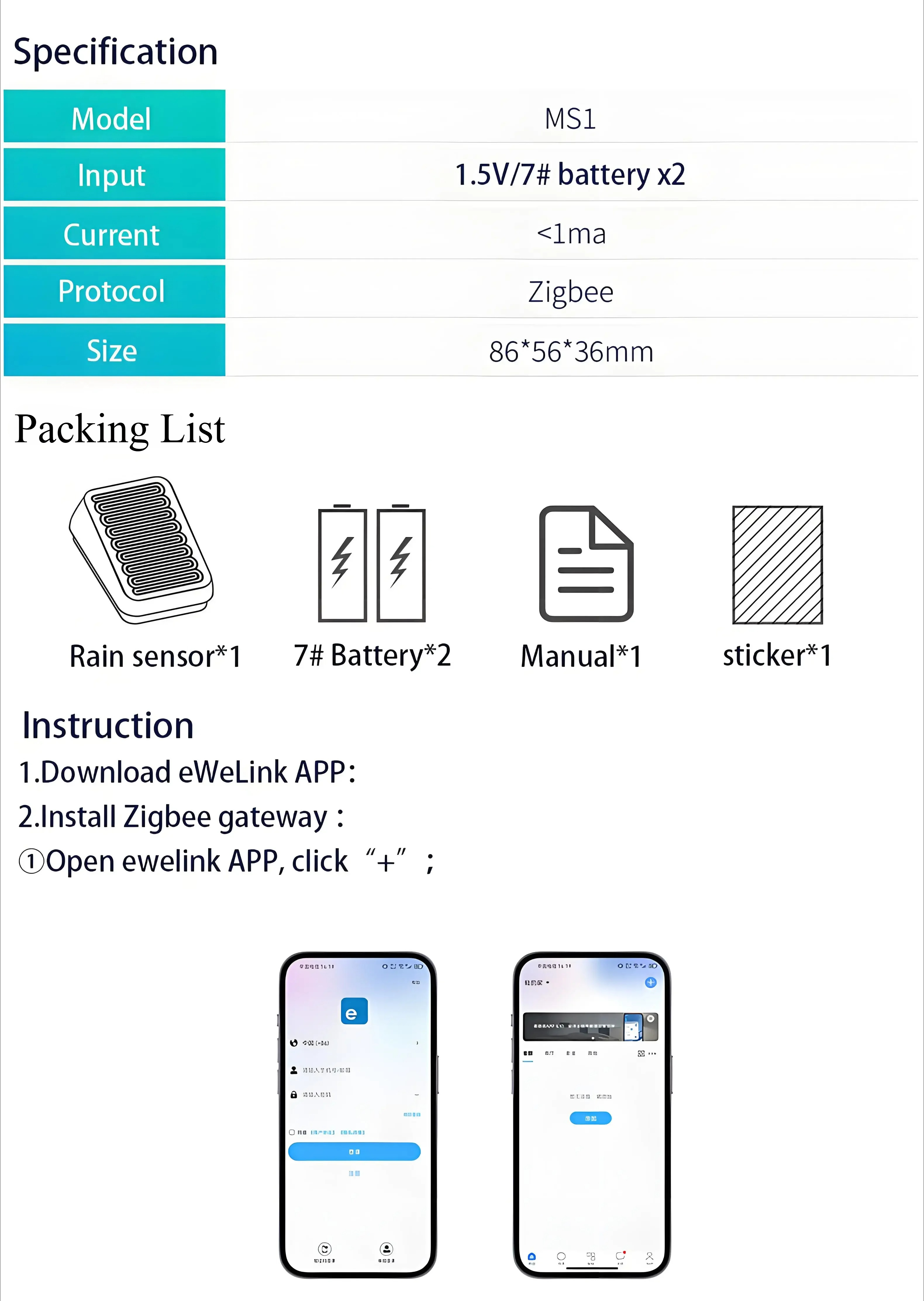 Advanced Zigbee Rain Sensor for Wireless Outdoor Rain Detection,Water Leak Sensor,Linkage Control,eWelink APP Supported