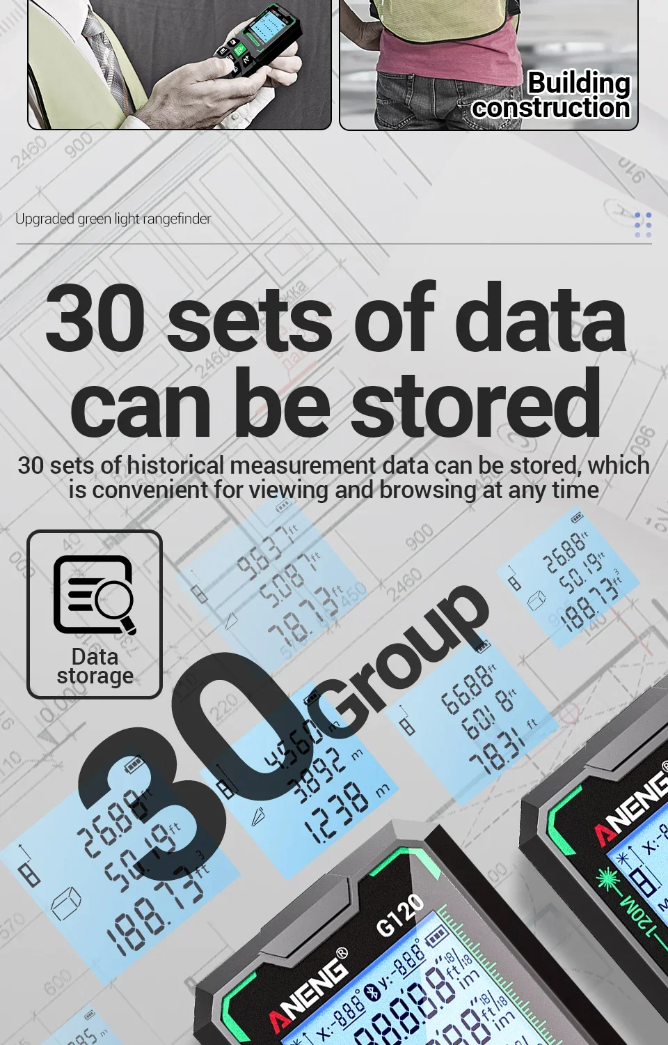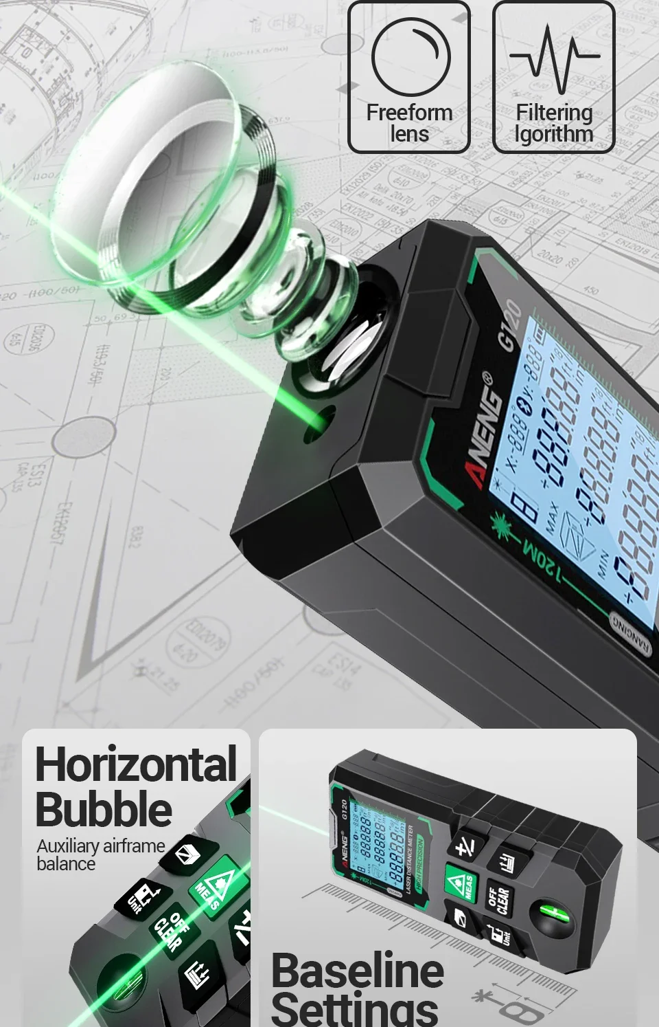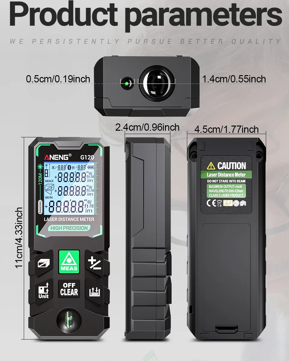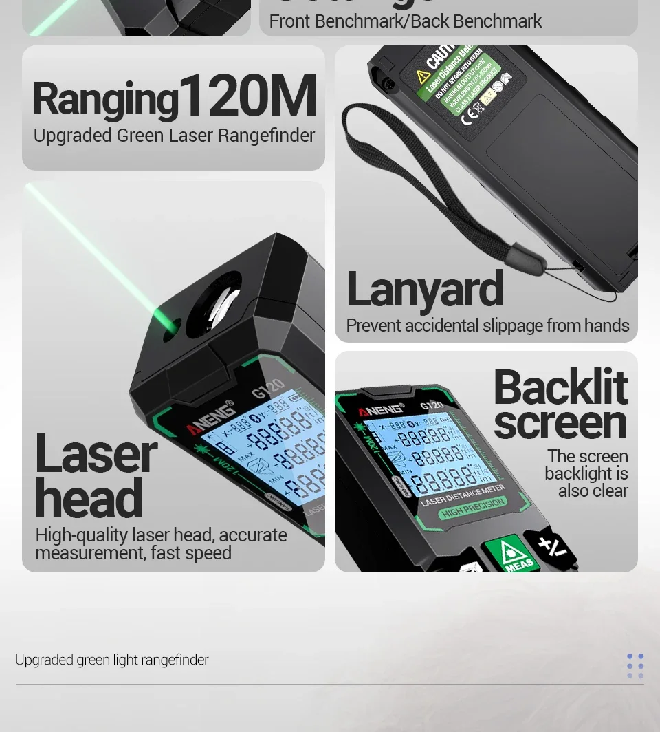 ANENG G50/G70/G100/G120 Green Laser Distance Meter Autonomous Benchmark Rangefinder 0.5~1 Second Flash Test Diastimeter Tools