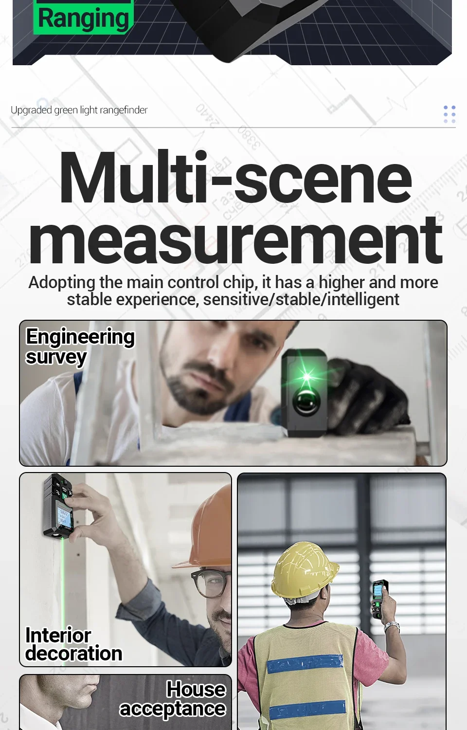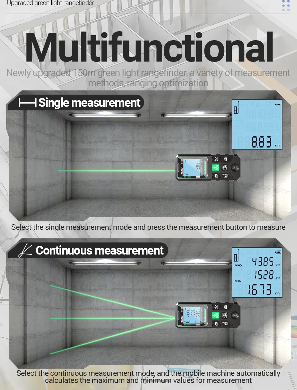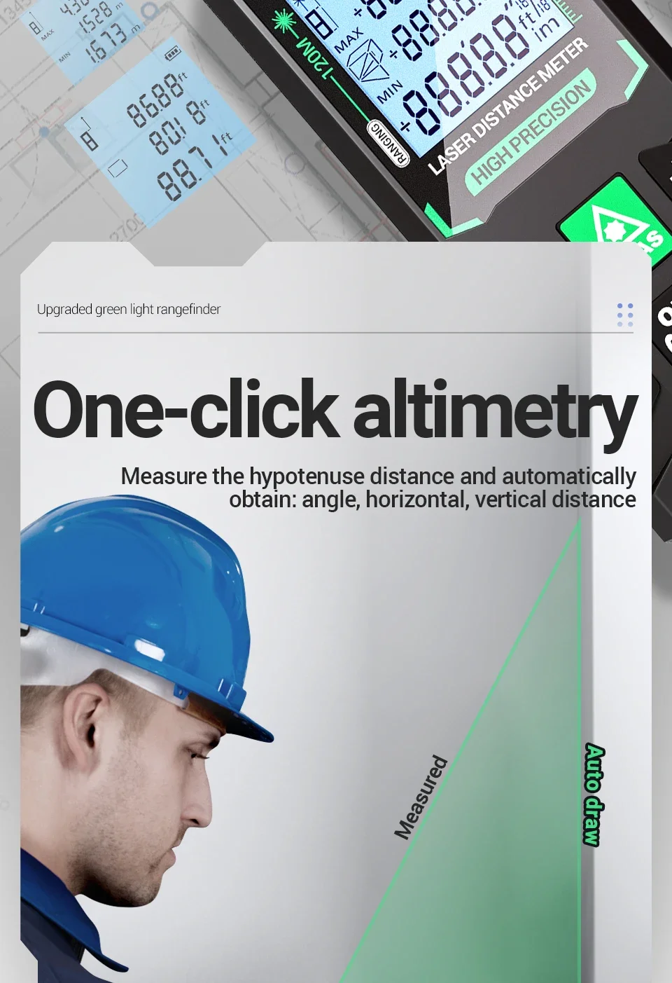 ANENG G50/G70/G100/G120 Green Laser Distance Meter Autonomous Benchmark Rangefinder 0.5~1 Second Flash Test Diastimeter Tools
