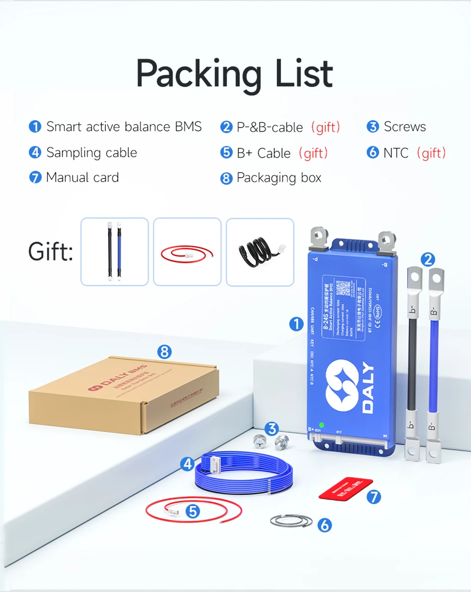 Daly BMS WiFi Active BMS 250 amperios for Lifepo4 4S 8S 24S 100A 150A 200A 500A Active Balance 1A Built-in BT 7S 24V 12V 48V