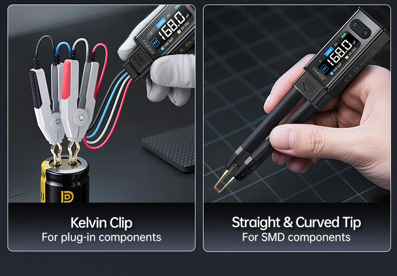 ◉ Dual-form design (tweezer + Kelvin clip) for diverse component types