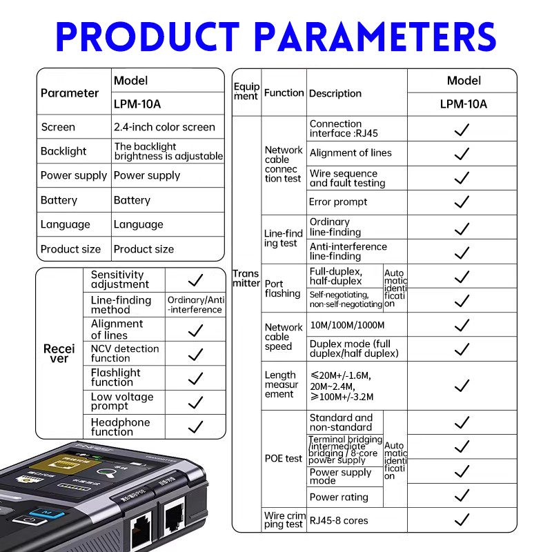 Combines length measurement, port flashing, crimping tests, and fault line detection in one convenient device, perfect for both professional and everyday use.
