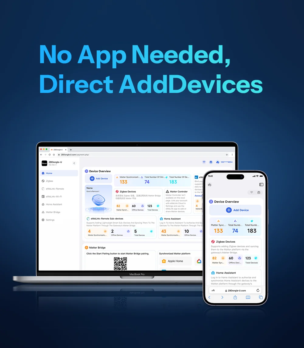 Access the local web interface via your PC or smartphone — no need to download the eWeLink app. Easily add devices to Matter platforms directly through the Web.