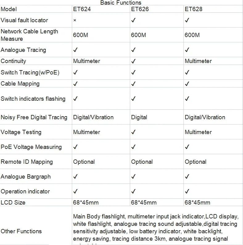 [Cable length measurement]: Measure and display the length and condition of network cables, telephone lines, coaxial video cables and other metal cables up to 600m/1968ft with easy calibration and operation.