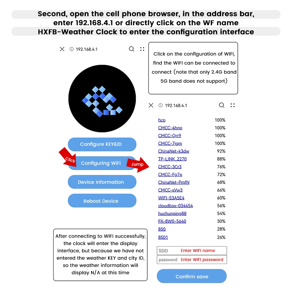 4、With setup button, connect to WIFI anytime and anywhere for city location setting.