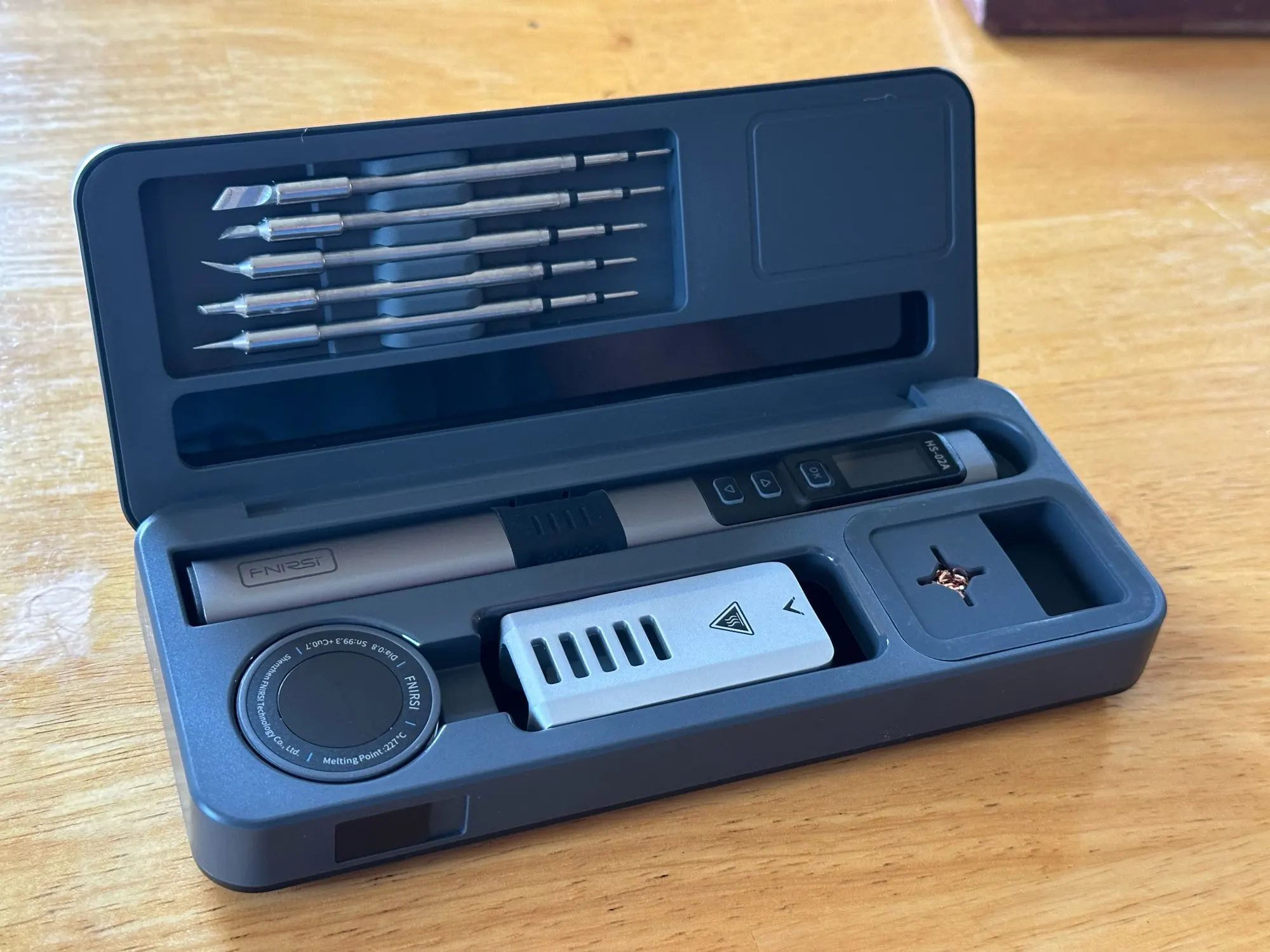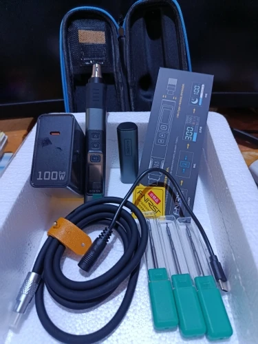 iron works, matches description. the box is nice too. its worth the price i paid $60 usd and 5 stars. only complaint is the cap for the iron is directional. if you insert it the wrong way, it wont close centered. this is because there are 2 prongs but the iron has 3 sides (triangle shaped). other complaint with the box is that the lid doesnt have a mechanism to lock it, or use magnets to keep it closed. it stays closed on the latch. the spool for the solder is held in with magnet and can be a bit finicky. that is definitely an afterthought and should be simplified without parts that can fall off. will worth the money.