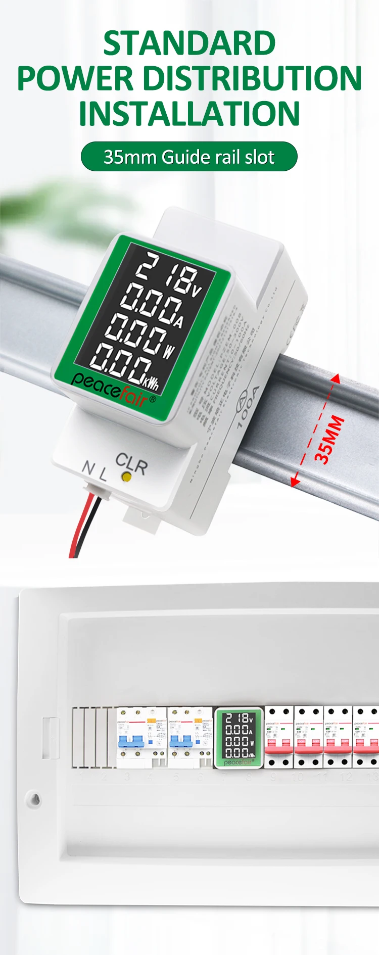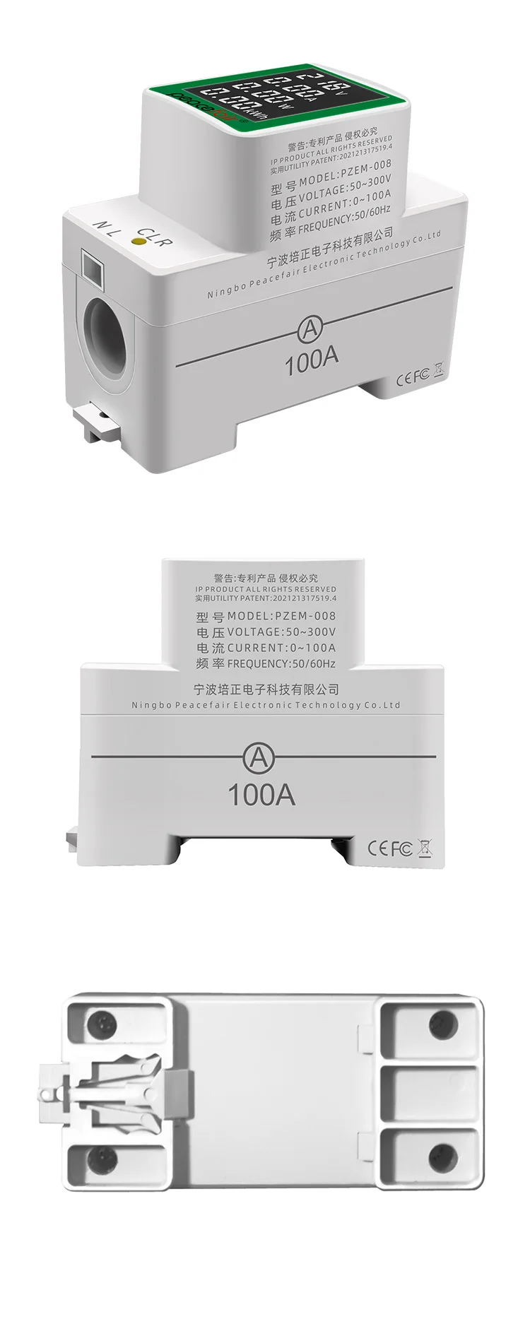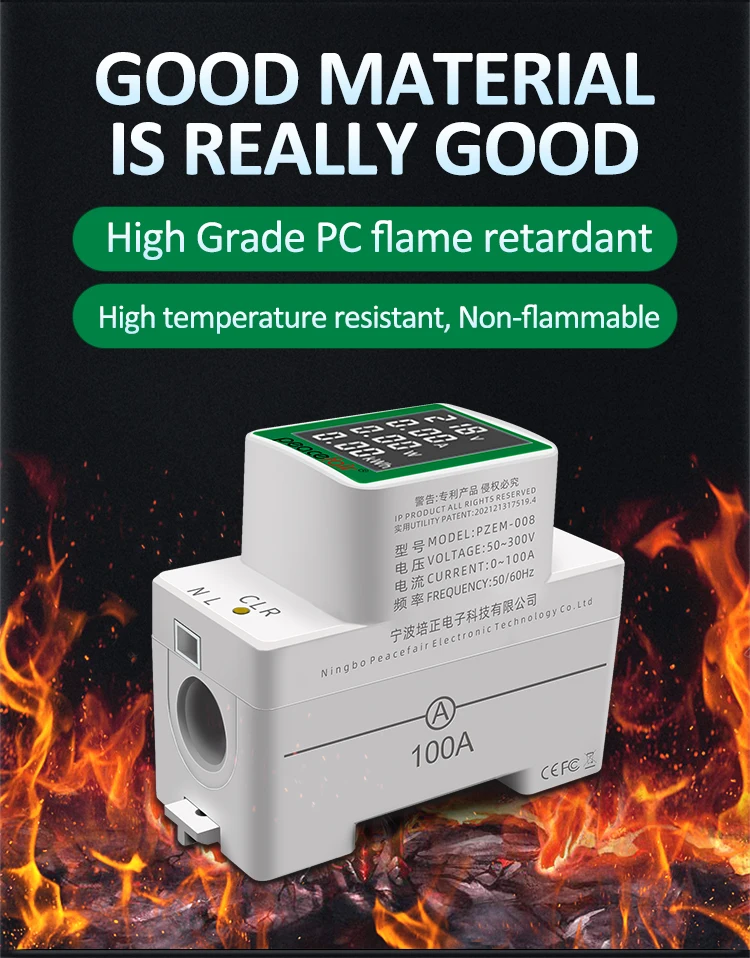 PZEM-008 Din Rail Electricity Digital Power Energy Meter Watt Kwh Wattmeter Monitor Ammeter Voltmeter AC 50-300V 100A
